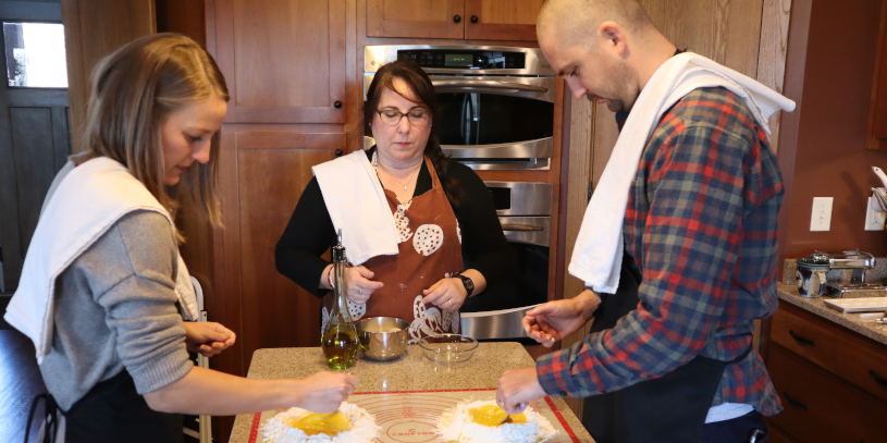 The class includes all the ingredients needed, you’ll take home any leftovers. Our pasta does contain eggs and wheat, it is not vegan nor gluten-free. We can accommodate Vegans with the purchase of a private class. Sorry we cannot make our pasta gluten-free.